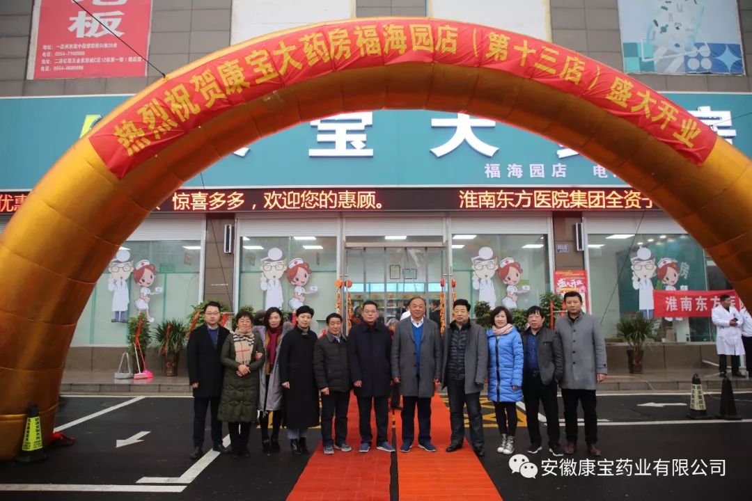 探索新模式、拓展新市場,2019年1月8日上午,康寶大藥房福海園店(第十三店)盛大開業。醫院集團董事長江鴻方、醫院集團董事、康寶董事長朱興林、鳳凰醫院劉春生院長、王智書記及領導班子成員、康寶藥業領導及部分員工參加了藥店的開業儀式。