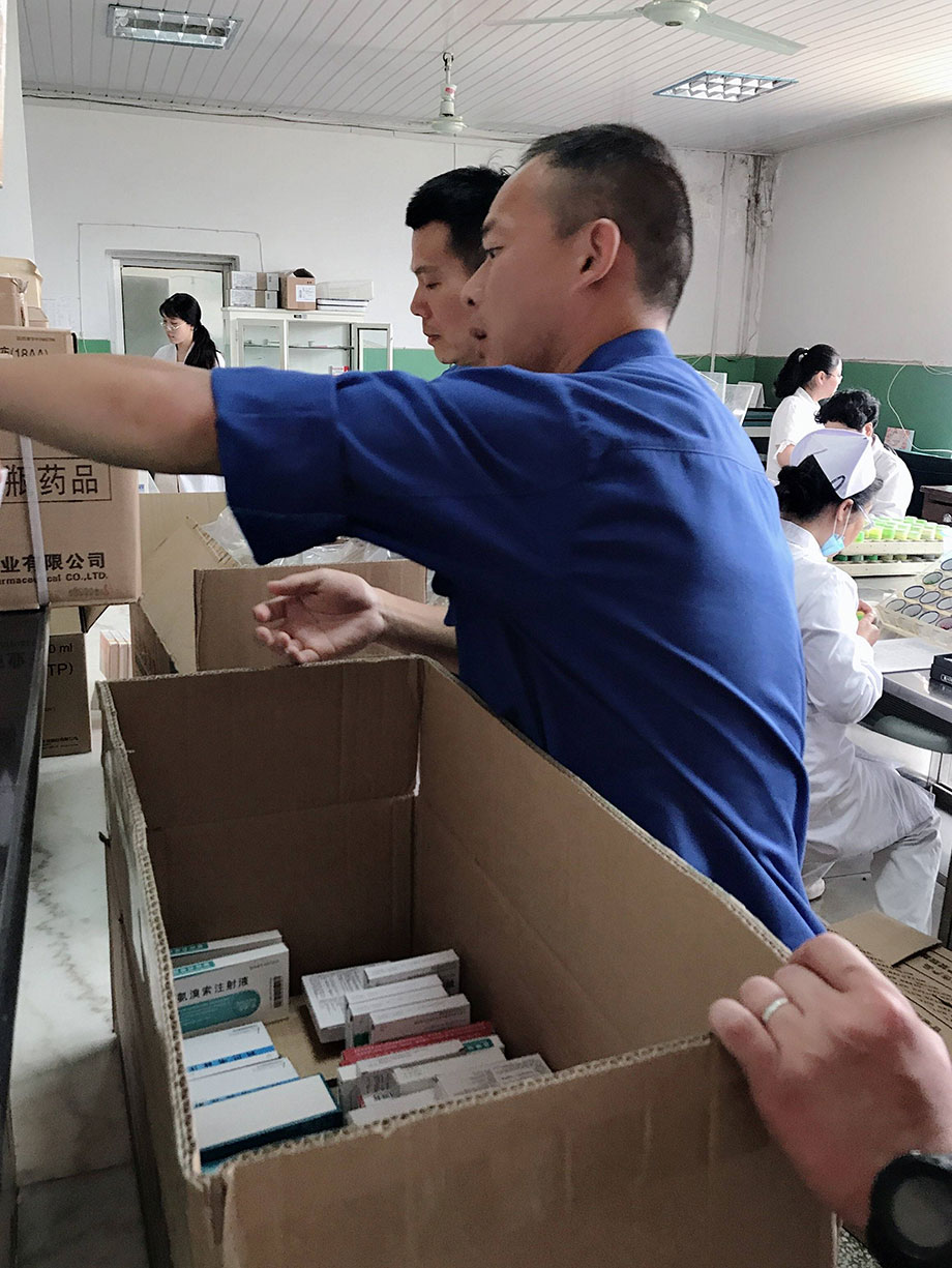 每次藥品全部運送到藥材科以后,大家還要和對方老師及時核對藥品,確保藥品的質量、數量、效期、產地、品名、規格等,確認沒有問題才算是配送成功,看著同事們汗流浹背的樣子,真心地為大家點個贊!