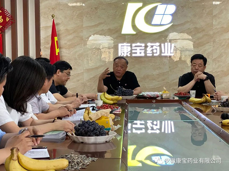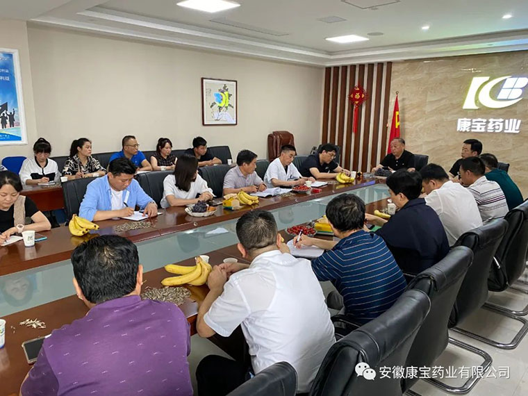 2020年6月18日下午,淮南東方醫院集團在康寶藥業召開藥品、器械供需座談會。醫院集團董事長江鴻方、醫院集團總經理江永強、康寶董事長朱興林、各醫院藥材科分管院長及科長、康寶藥業經理及部長參加了會議。
