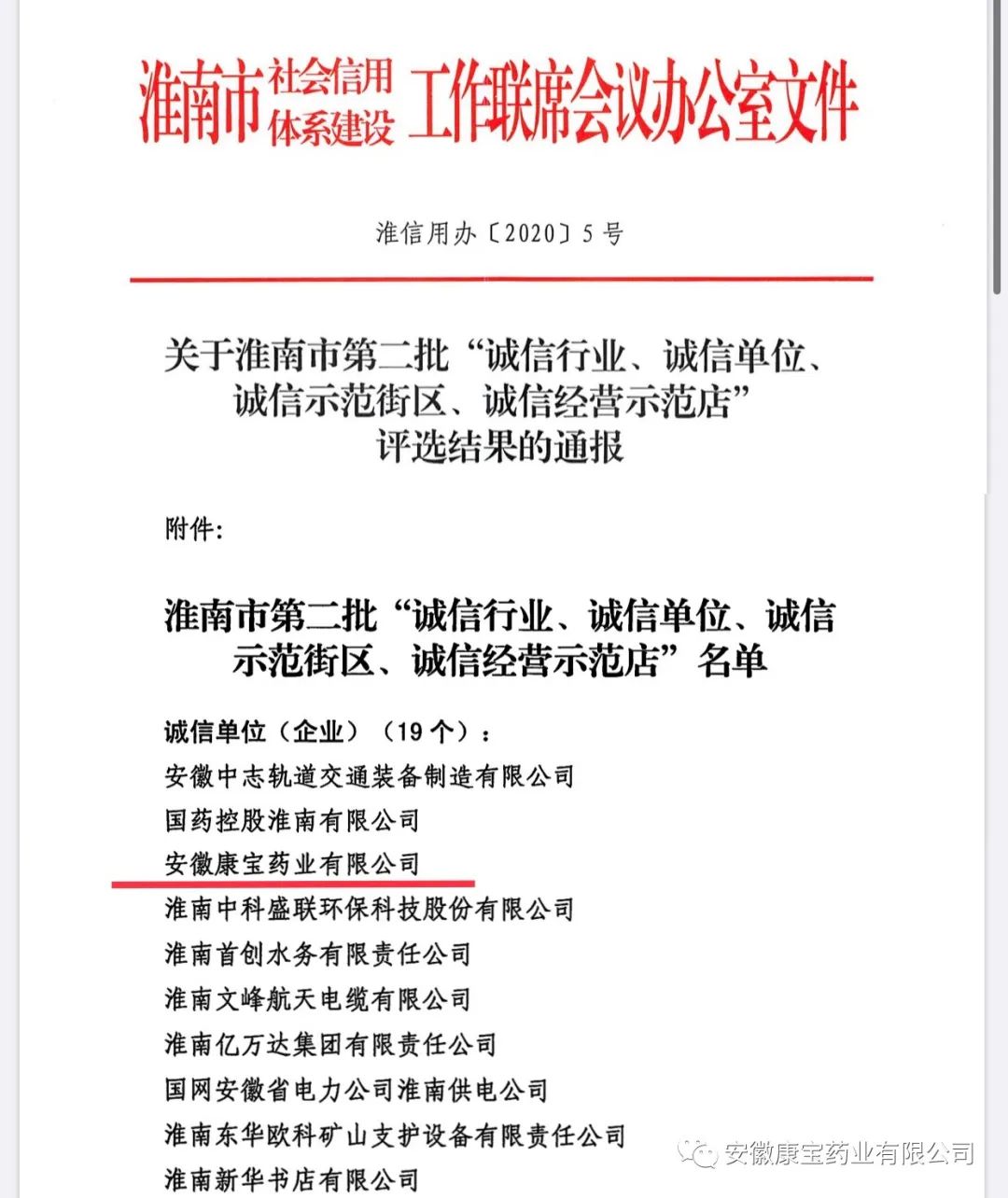 近日,淮南市發(fā)展和改革委員會公布了淮南市2020年“誠信示范單位”評選結(jié)果,經(jīng)過企業(yè)自主申報、主管部門推薦、聯(lián)席會議成員單位審查等程序,安徽康寶藥業(yè)有限公司喜獲“淮南市誠信單位”榮譽稱號。