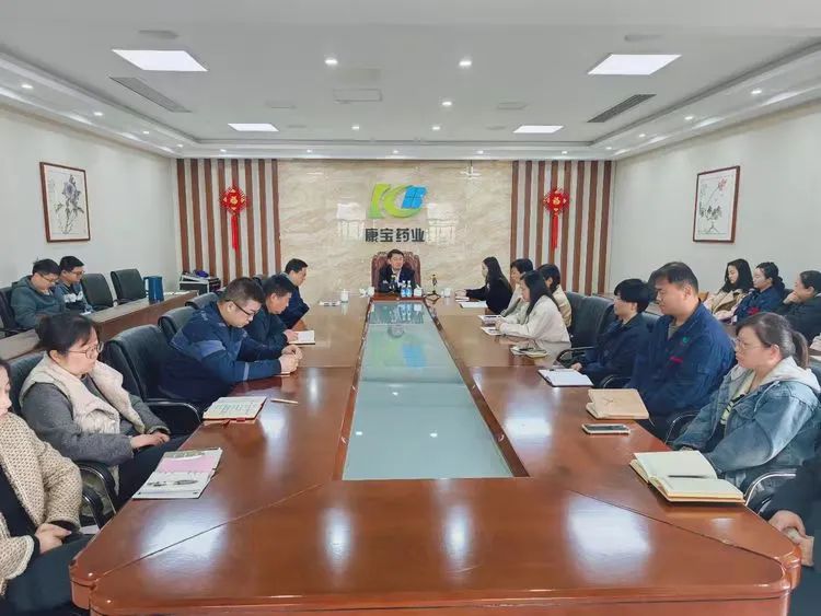 4月2日上午,淮南東方醫院集團董事長江永強蒞臨安徽康寶藥業有限公司視察指導工作。公司總經理饒靜、各部門負責人及員工代表參加了會議。
